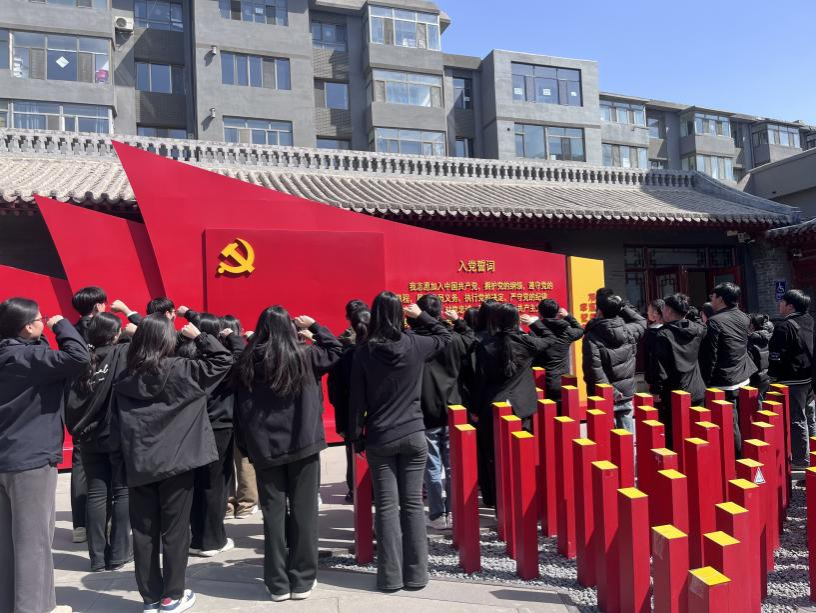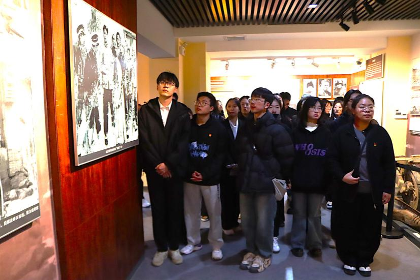 同学们认真聆听讲解员的介绍,不时驻足凝视,深刻感受着革命先辈们坚定的理想信念和无私奉献的精神。最后全体党员面向党旗庄严宣誓,用铿锵有力的声音重温了入党誓词。