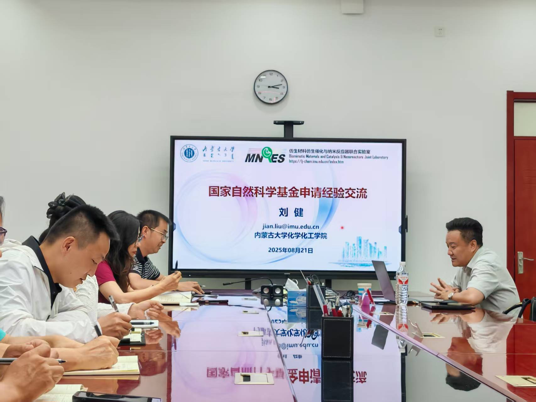 2025年8月21日,内蒙古大学化学化工学院院长、博士生导师刘健教授应邀莅临我院,开展学科建设交流暨国家自然科学基金申请经验分享活动。我院领导、各系主任及青年教师代表参加交流。双方围绕学科建设、科研合作等议题展开深入探讨,为学院学科发展注入新动能。