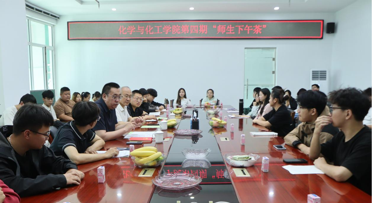 2025年9月17日下午,化学与化工学院第四期“师生下午茶”活动在逸夫楼E202举行。本次活动以“洞见未来,赋能职场”为主题,邀请中国包头高新技术人才服务中心人才交流处处长常利民、人才交流科科长王寒松、人才交流科副科长张强出席活动,学院就业专职辅导员及2022级学生代表共同参与。