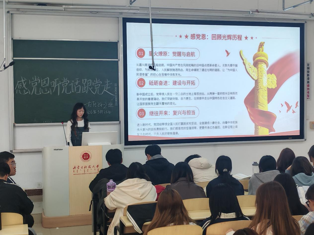 活动中,由各班级团支书组织,以集中学习、交流分享为主要形式,重温党带领全国人民实现从站起来、富起来到强起来的伟大历史征程,教育引导青年学子深刻领悟党的初心使命与时代担当,厚植爱党、爱国、爱人民的真挚情怀,切实引导广大青年学生将个人理想融入国家发展大局,以青春之姿勇担时代重任。